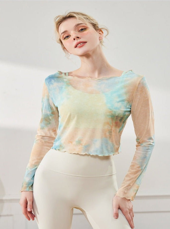 Long Sleeves Printed Tie-Dye Cropped Smock Top