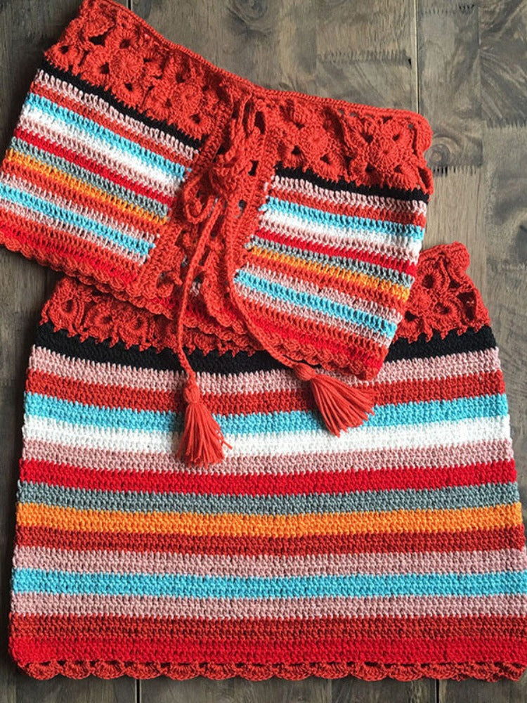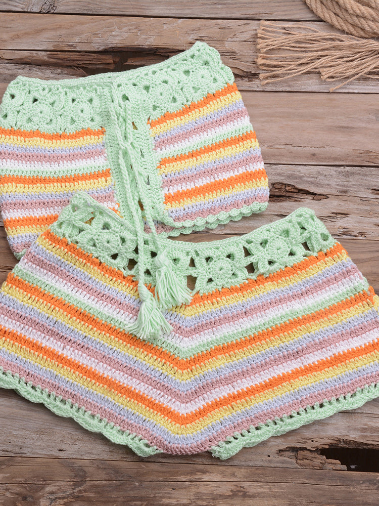 Handmade Crochet Matching Set Rainbow Striped Bobo Bikini Set