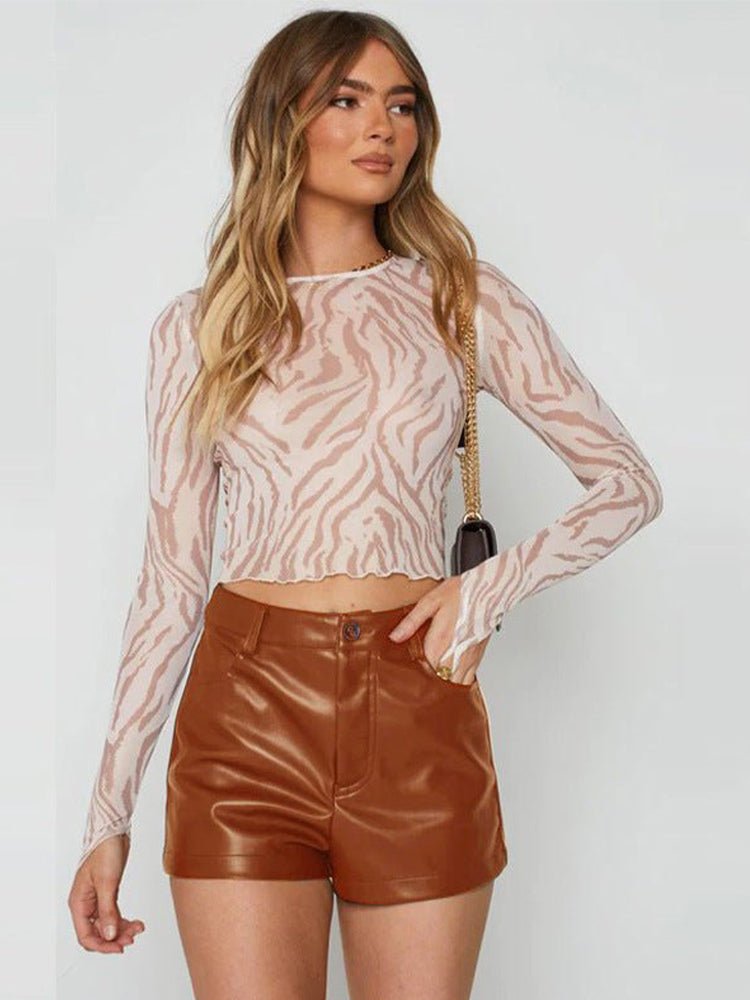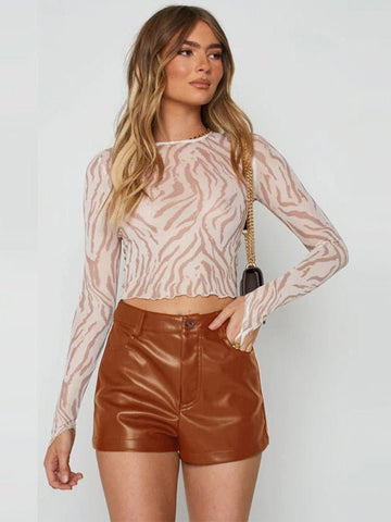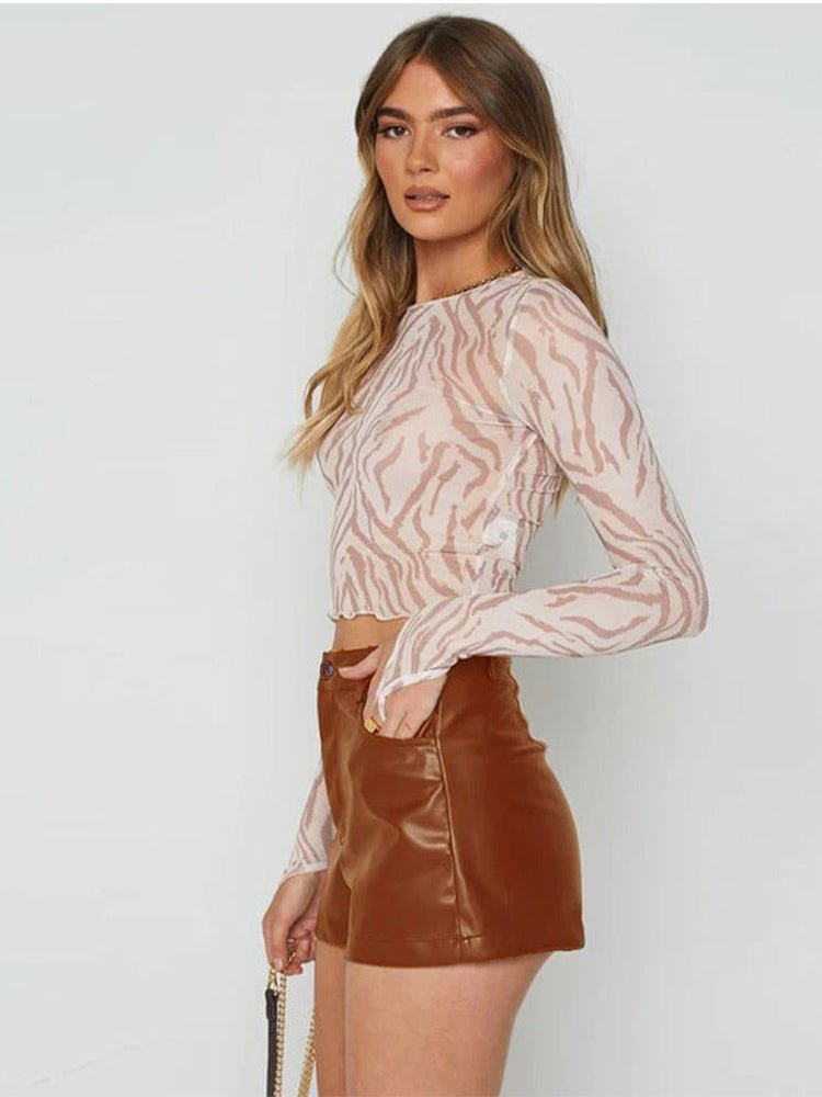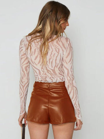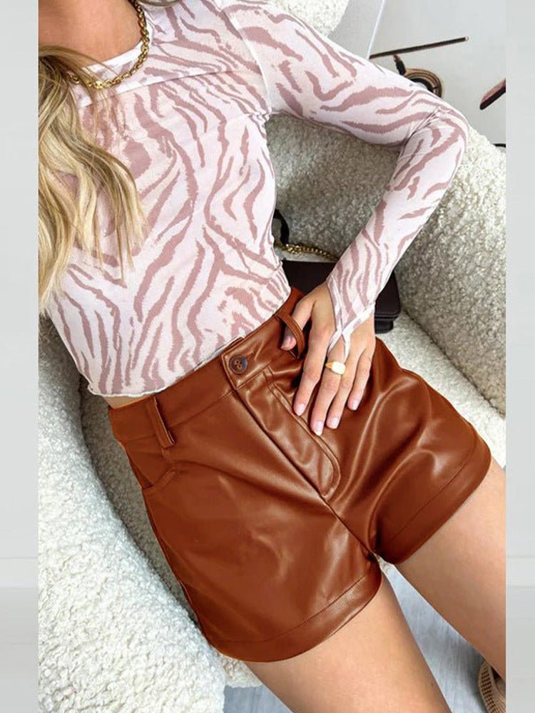 Elevate any look, no matter what the occasion is, with these faux leather shorts. Featuring a black and brown faux leather fabric with a belted waist design, style with a bodysuit and thigh highs for a killer look.