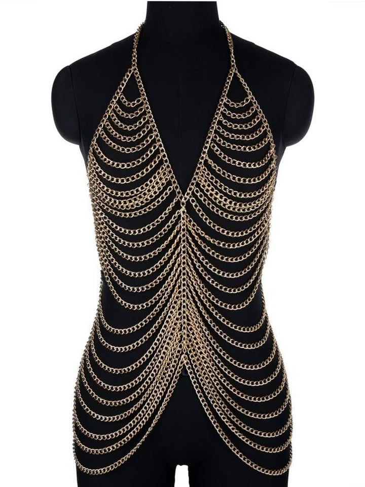 Gioielli alla moda Boho con catena per la pancia a corpo intero senza schienale