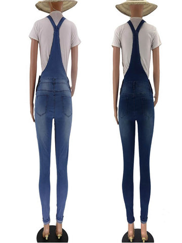 Washed Strappy Back Detail Denim ripped Jumpsuit