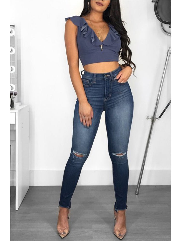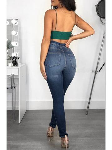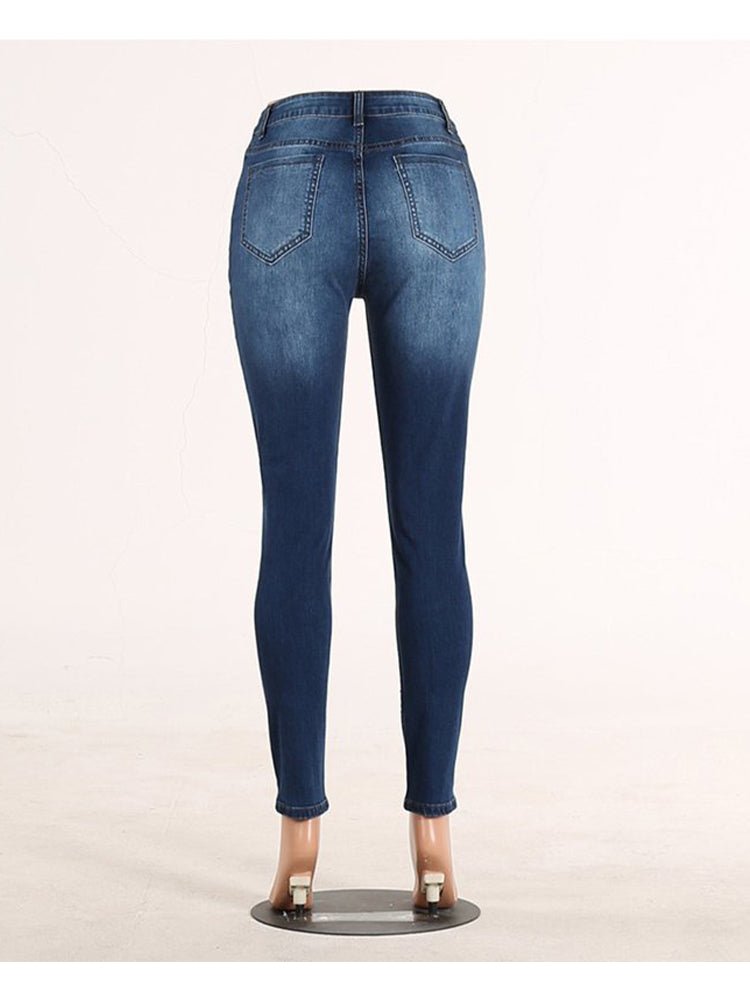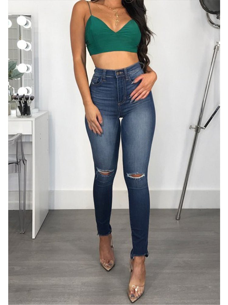 Women's Fashion High Elastic Hip Lift Ripped Jeans