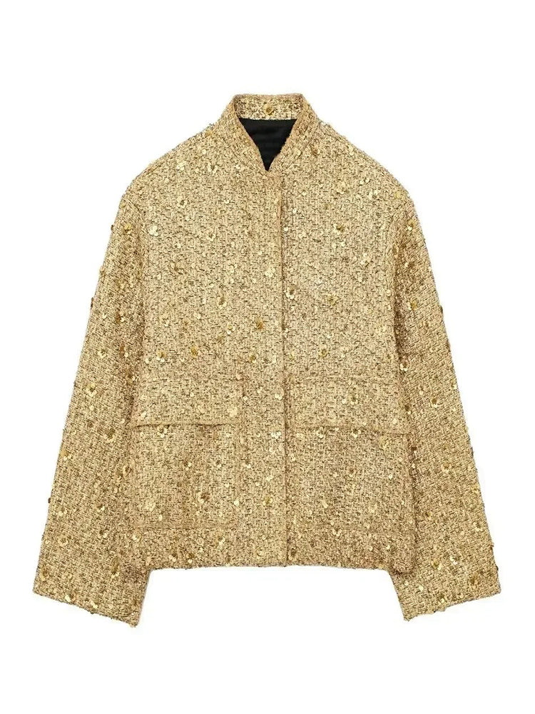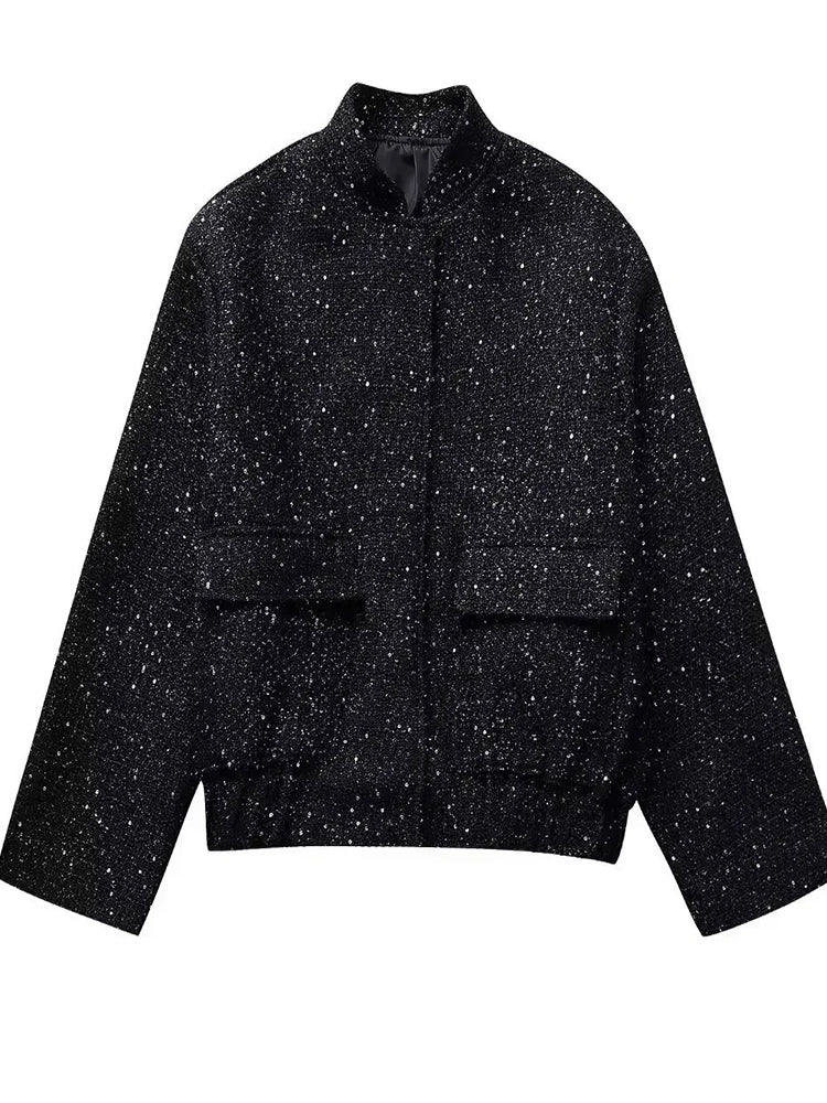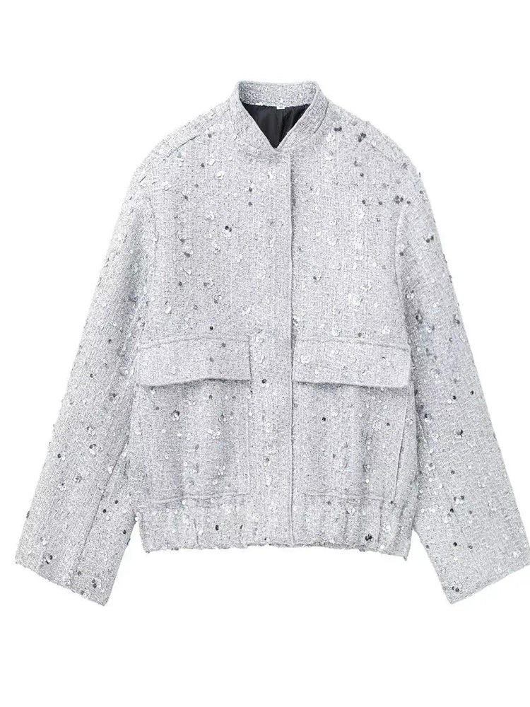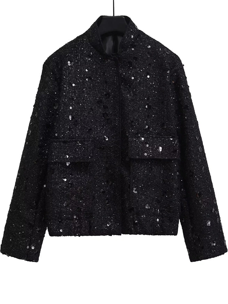 Add a touch of glamour to your fall wardrobe with this stunning women's sequined bomber jacket. Designed with an O-neck collar and long sleeves, this jacket...
